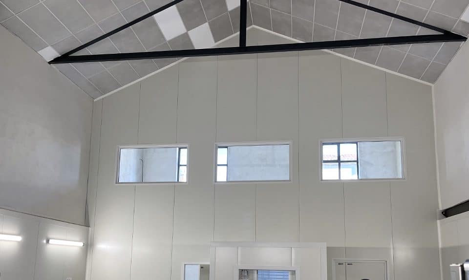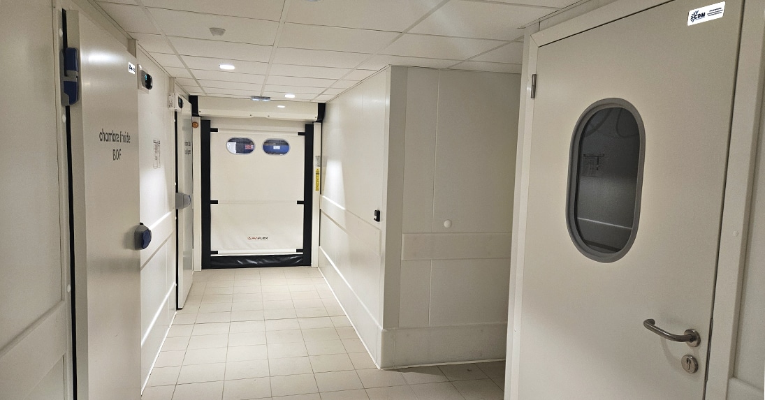 panneaux isothermes, revêtements PVC, portes coupe-feu, plinthes, rideaux à lanières, faux plafonds, protections murales, et tous les accessoires de finition nécessaires à une mise en conformité réussie.